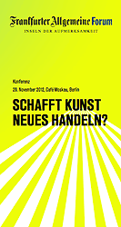 In der hochkarätig besetzten Konferenz Schafft Kunst neues Handeln? wurden in Vorträgen und in Gesprächen zwischen Experten und Redakteuren der F.A.Z. die aktuellen Entwicklungen des internationalen Kunstmarktes analysiert, das Verhältnis zwischen Kunstmarkt und gesellschaftlicher Verantwortung für Kunst diskutiert und die sich daraus ergebenden Perspektiven und Potentiale aufgezeigt.